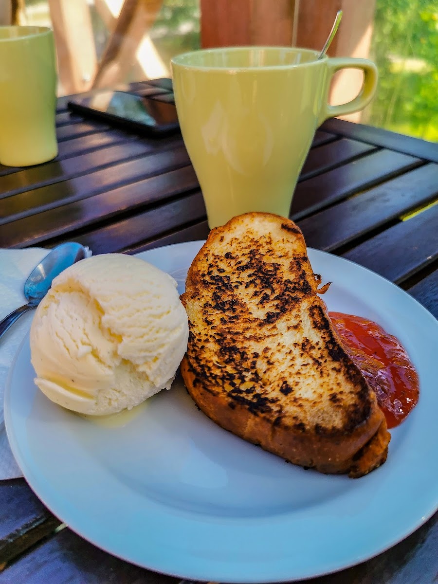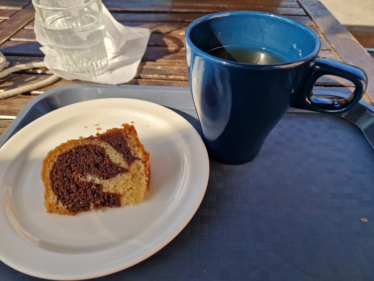 + Good views, historical building + They make dogs feel very welcome and have a treat for them on the menu as well + Some gluten free options, both salty and sweet - The person serving us at the counter seemed like they were tired of people and their job..